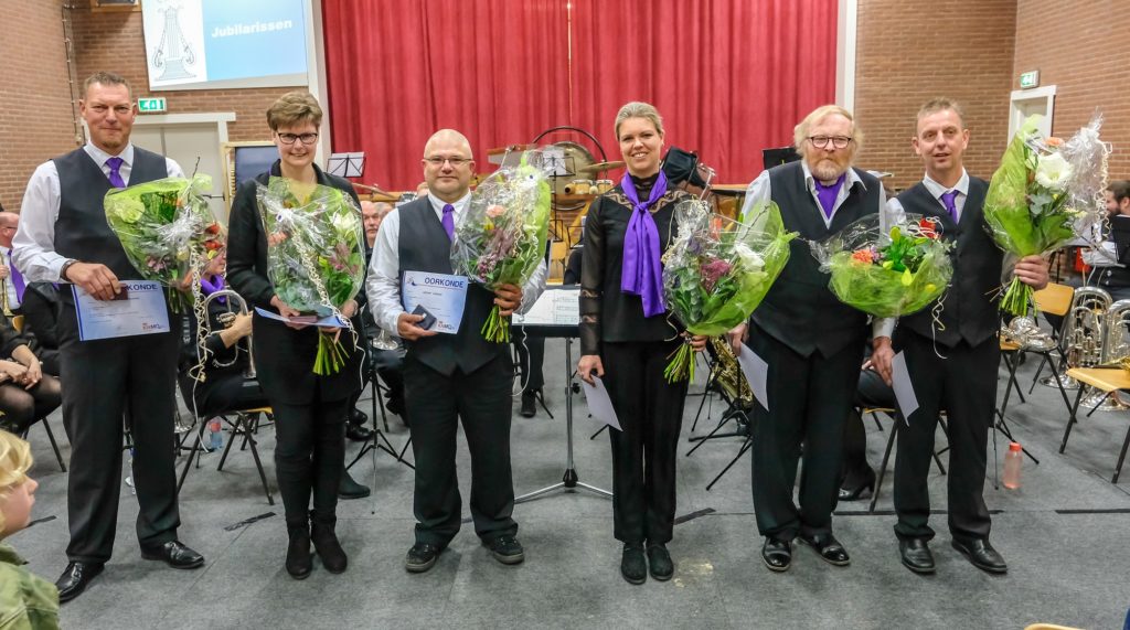 Tijdens dit concert werden ook een aantal jubilarissen gehuldigd. Zij ontvingen een oorkonde en een speldje voor hun lidmaatschap van de KNMO.