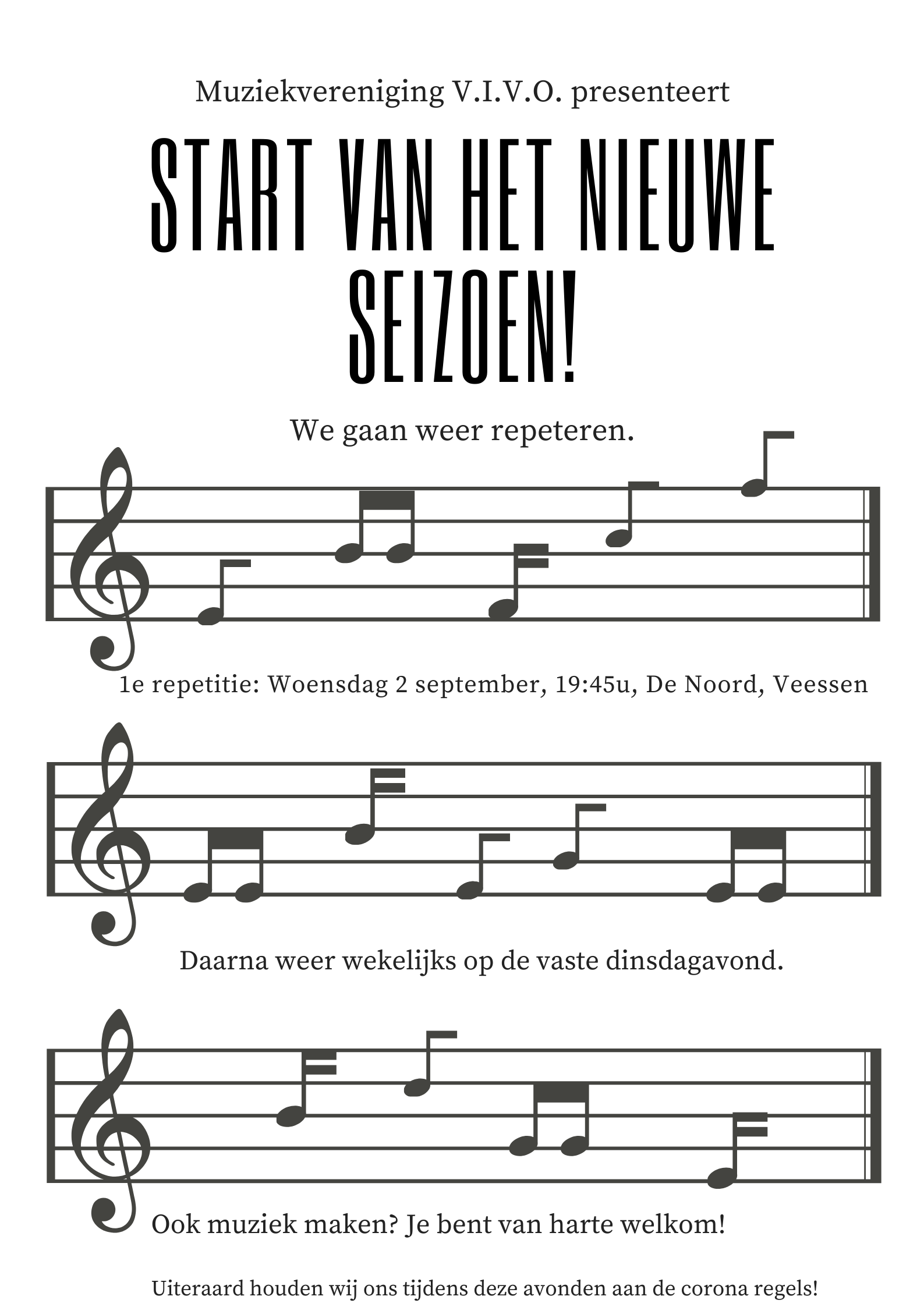 Eerste Repetitie Seizoen 2020/2021 22 augustus 2020 / V.I.V.O. / Geen reacties We gaan weer van start! Klik op het bericht voor meer info.
