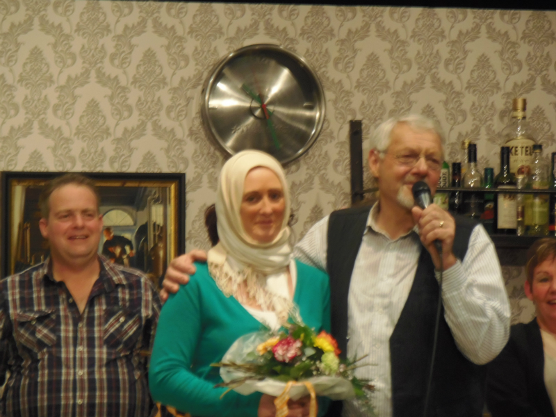 V.l.n.r. : Wanda IJzerman 40 jaar lid, Janny Ruiterkamp 60 jaar lid, Gerrit de Weerd 75 jaar lid, Larissa van der Haar 12,5 jaar lid, Angela Grolleman 12,5 jaar lid. Zij kregen allemaal een oorkonde en speldje. Alle vijf van harte gefeliciteerd!