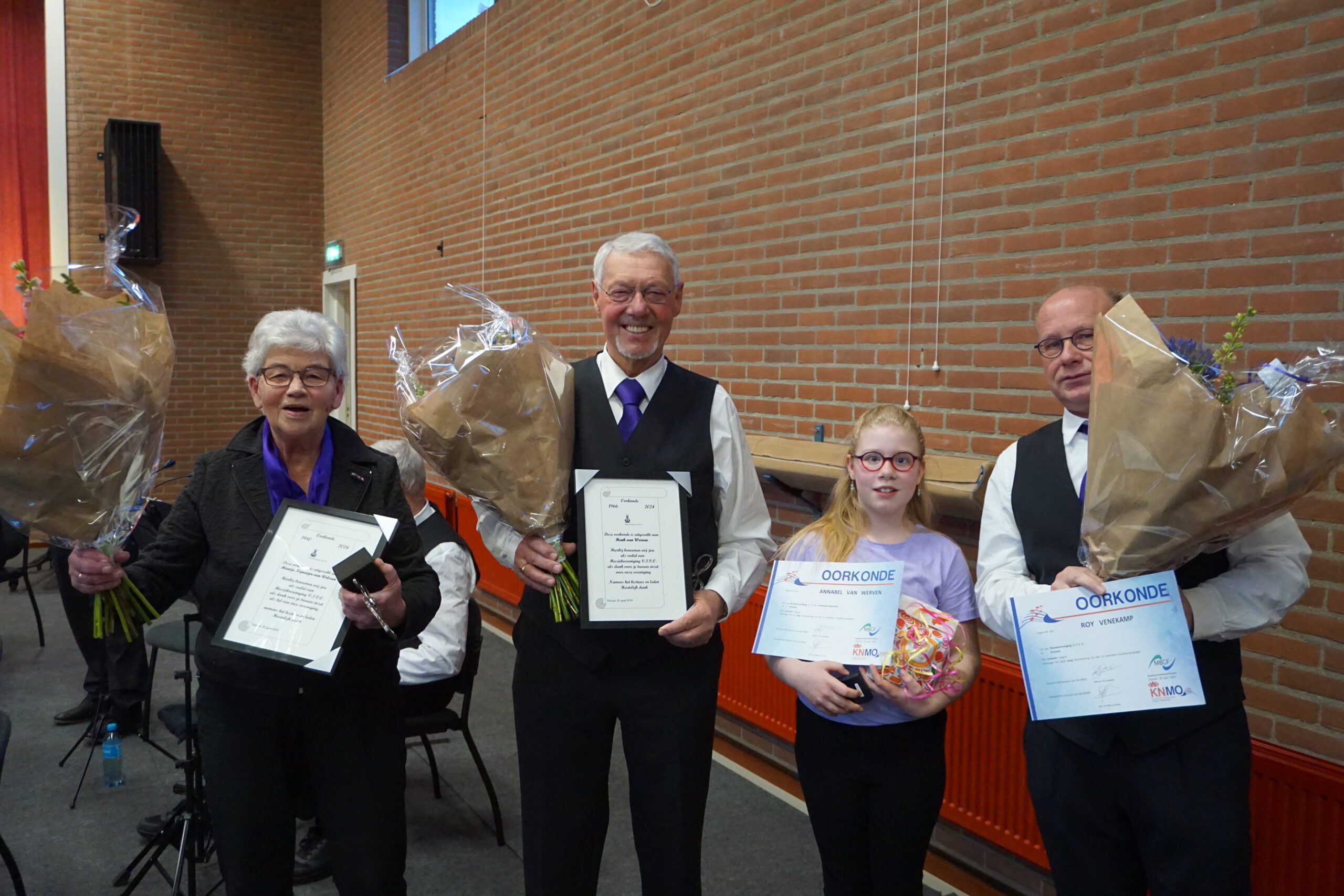 Tijdens dit concert zijn er ook twee leden gehuldigd; Roy Venekamp is 12,5 jaar lid van de muziekvereniging en Annabel van Werven 5 jaar lid bij de majorettes. Zij ontvingen een oorkonde en een speldje voor hun lidmaatschap. Daarnaast zijn er nog twee leden in het zonnetje gezet. Henk van Werven en Mientje Nijmeijer-van Welsum zijn beide benoemd tot erelid van Muziekvereniging V.I.V.O. Zij ontvingen een oorkonde en een beeldje wat speciaal voor deze gelegenheid was gemaakt. Tijdens deze avond is het voorzitterschap ook overgedragen. Na vele jaren voorzitter te zijn geweest heeft Henri van Werven het stokje overgedragen aan Roy Venekamp. Al met al een hele geslaagde en feestelijke avond!