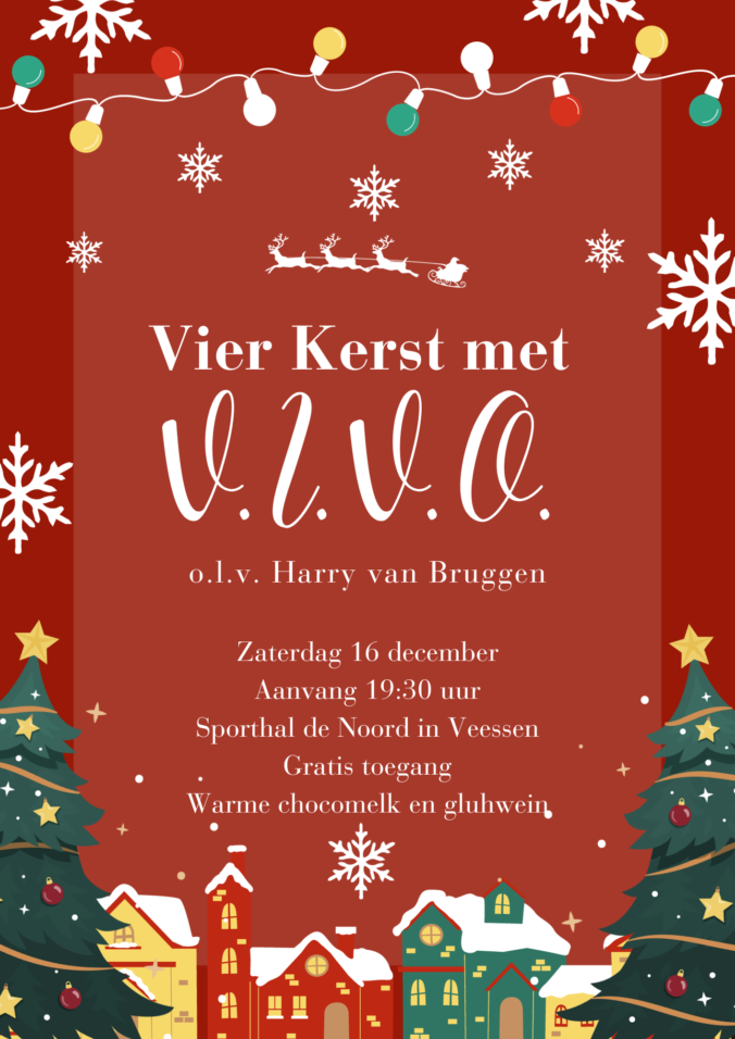 Op zaterdag 16 december houdt muziekvereniging V.I.V.O. een kerstconcert. Het belooft een muzikale avond te worden waarbij er verschillende soorten kerstmuziek zullen worden gespeeld, zoals de bekende Jingle Bells, maar ook A Spanisch Christmas Carol geschreven door Patrick Millstone. Daarnaast zal er uiteraard een kraam zijn voor warme chocolademelk en glühwein.